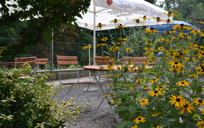 Die neue Möblierung gibt dem gemütlichen Biergarten die passende Optik und lädt zum Verweilen ein.